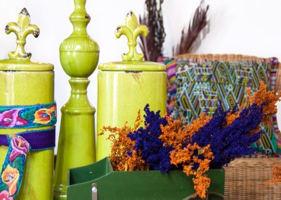 The villas boast a charming design, blending rustic wooden beams and exposed dark wood accents with bright white walls and colorful, locally-inspired textiles. Each space, from the cozy living rooms to the spacious bedrooms, is thoughtfully decorated with traditional art and craftsmanship, creating a welcoming and authentic atmosphere.