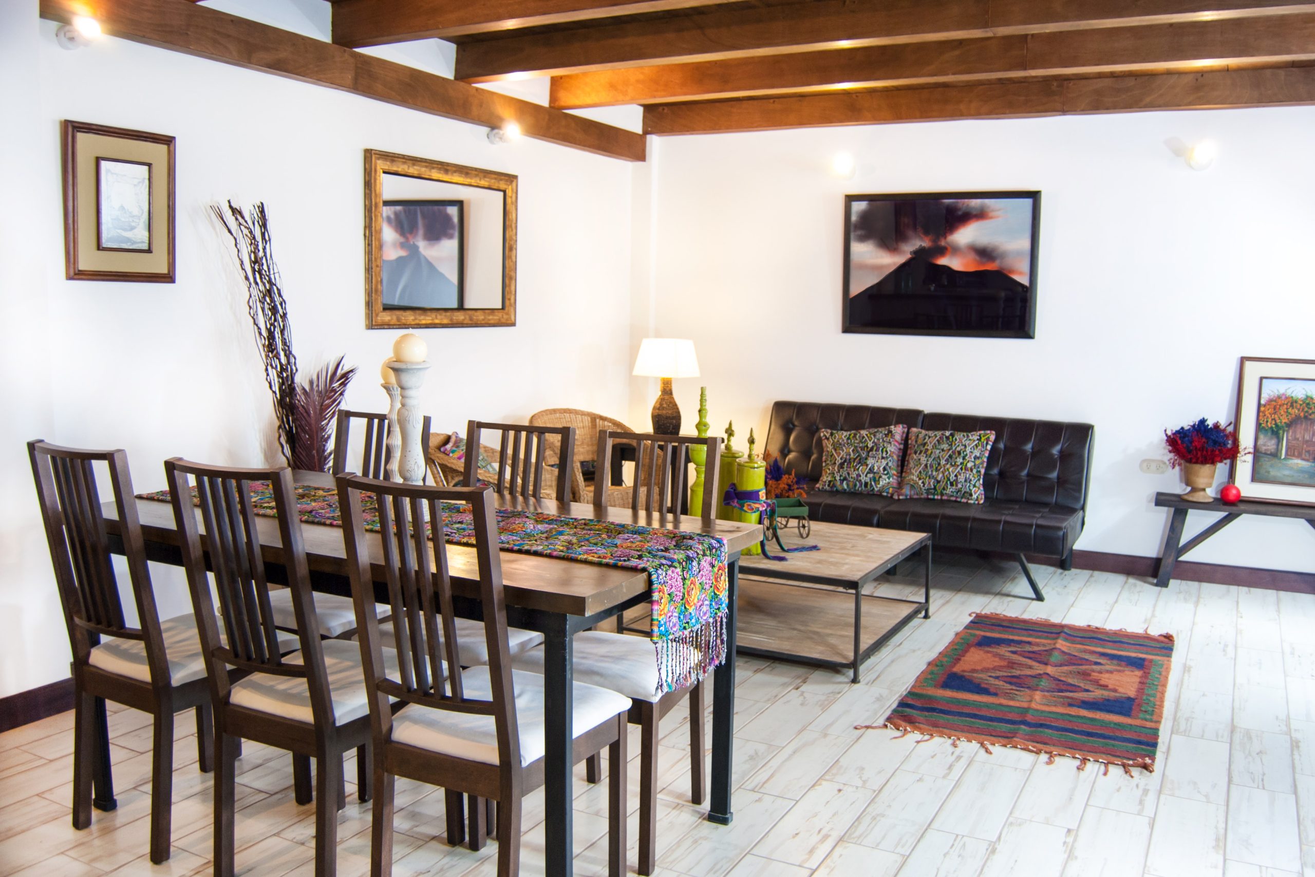 Come up to the terrace lounge and enjoy a coffee or a drink looking at the majestic Agua, Fuego and Acatenango Volcanos.