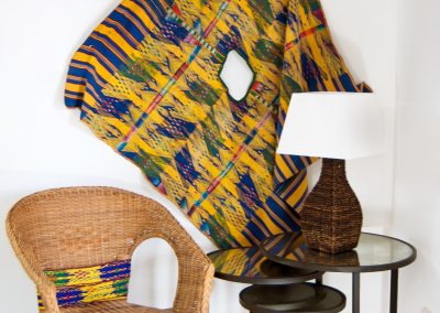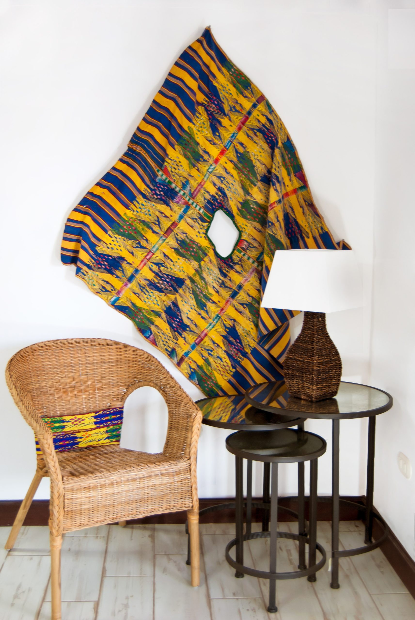 The villas boast a charming design, blending rustic wooden beams and exposed dark wood accents with bright white walls and colorful, locally-inspired textiles. Each space, from the cozy living rooms to the spacious bedrooms, is thoughtfully decorated with traditional art and craftsmanship, creating a welcoming and authentic atmosphere.