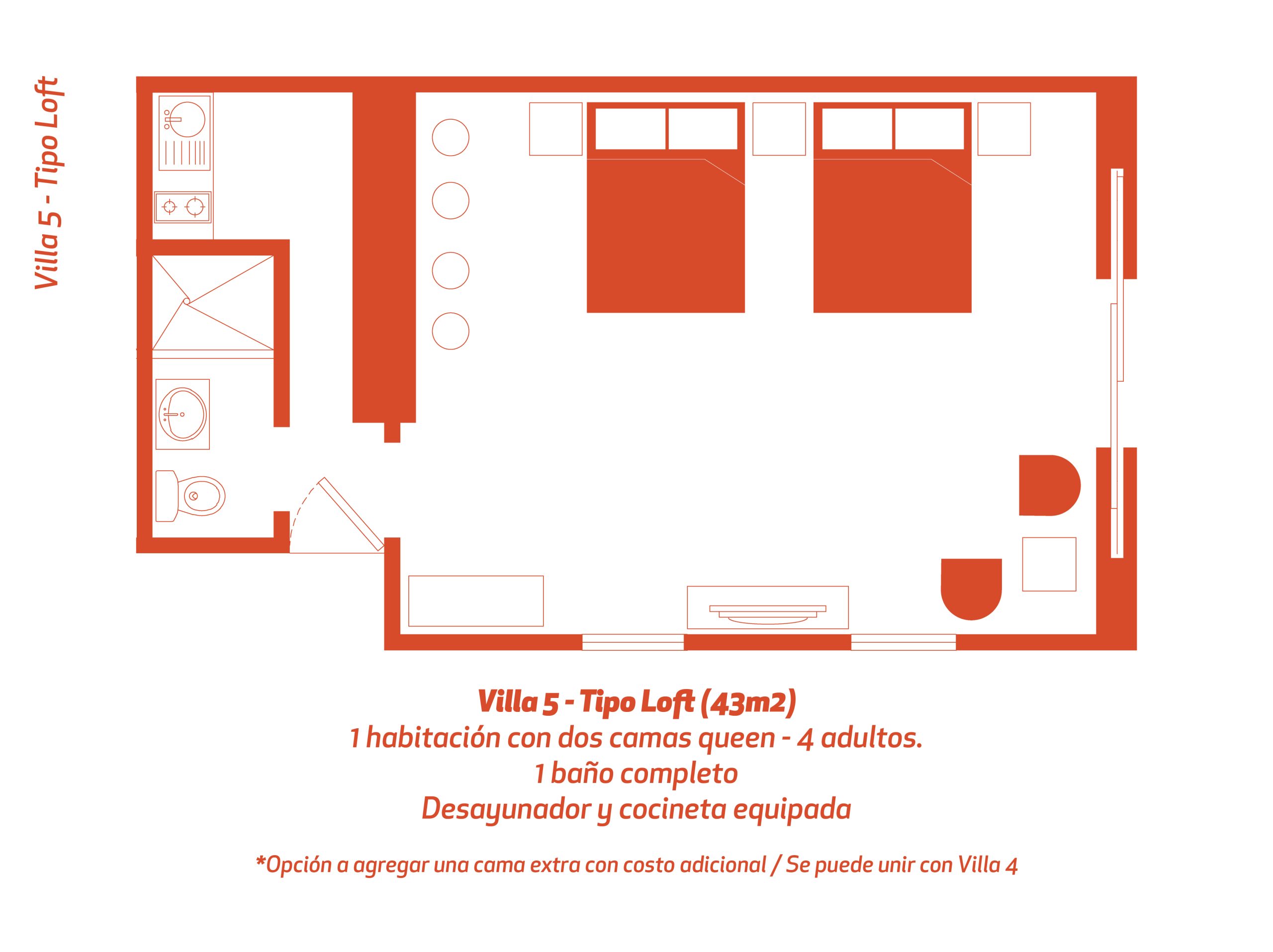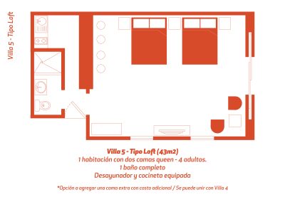 2 stories couples Villa, with 1 large Bedroom with a double bed, lounge, dining room, kitchen an 1.5 bathrooms.